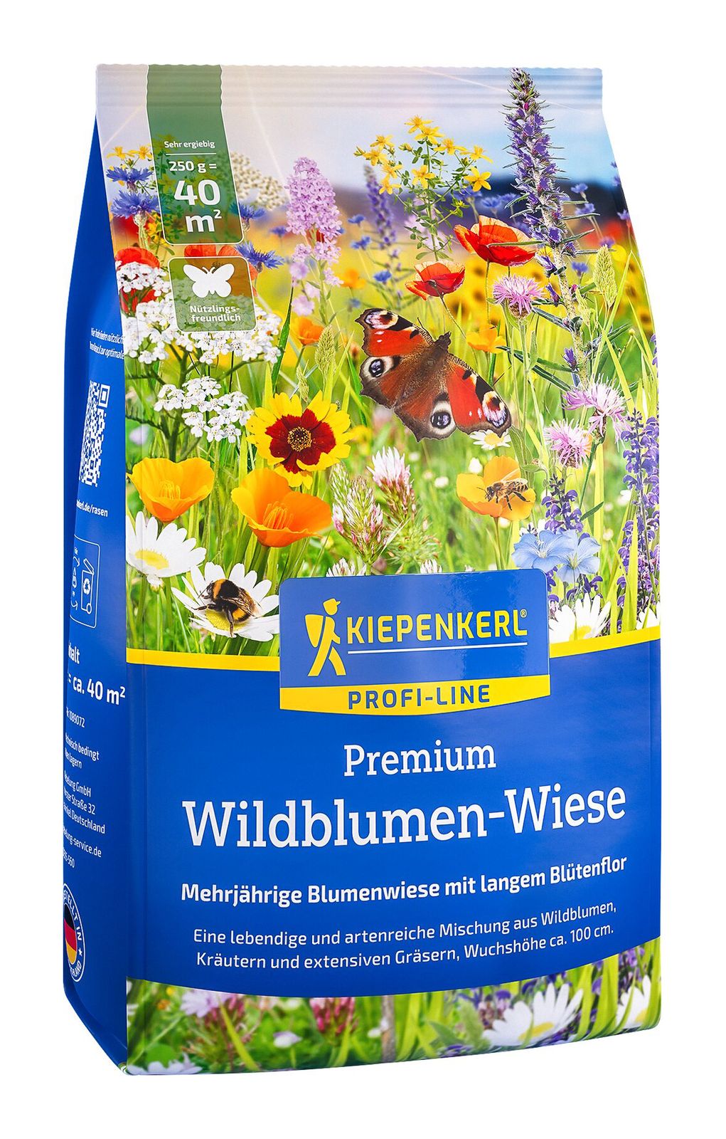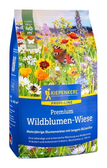 ProfiLine Nature. Natürliche und artenreiche Mischung aus Wildblumen, Kräutern und Gräsern. Lebensraum für Hummeln, Bienen und Schmetterlinge. Pflegeleicht. Geringe Aufwandsmenge : nur 6-7 g/m². Reicht für ca. 40 m².